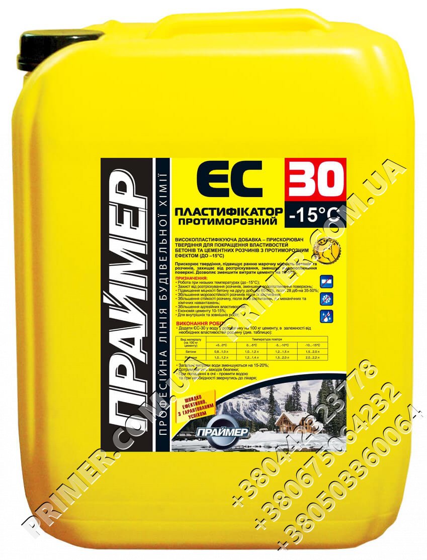 - Розчинити пластифікатор ЄС-30 в половині рекомендованого для приготування розчину об’єму води, ретельно перемішати.
