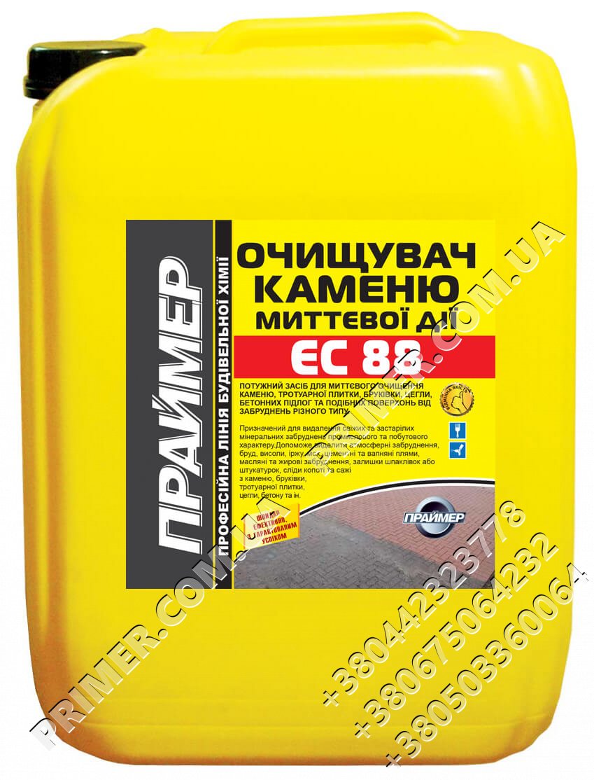 Потужний засіб для миттєвого очищення каменю, тротуарної плитки, бруківки, цегли, бетонних підлог та подібних поверхонь від забруднень різного типу.